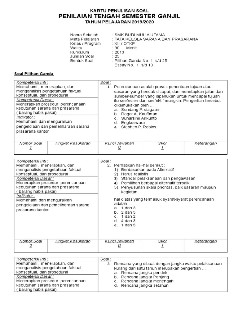 Nov 25 2018 download soal uas administrasi perkantoran kelas 10 11 12 semester 1 k13 revisi 2018 soal tes teori kejuruan administrasi perkantoran kurikulum 2013 rev.